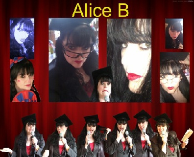 Alice also appears on the standup circuit as Alice B doing various characters, talking about her crazy drama school experiences and also about having OCD. Alice also appears on radio, presenting topical comedy slots.